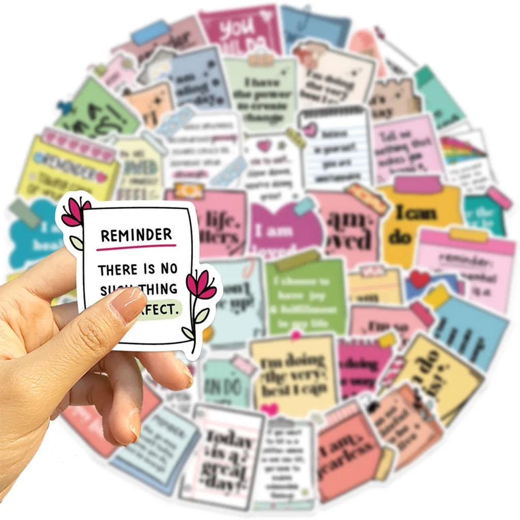 This affirmation sticker pack is like a tiny pep talk for all the places you look every day. Filled with uplifting, motivating designs, these waterproof stickers are perfect for laptops, water bottles, notebooks, helmets, bikes, pencil cases, and anywhere that could use a little better energy. They bring the kind of positive, feel-good vibe that makes everyday stuff look more personal and a lot less boring. Great for students, planners, journal lovers, gift baskets, and anyone building a life that runs on coffee, hope, and sticky little reminders. The waterproof finish makes them practical for daily use, while the encouraging messages do all the heavy lifting in the mood department. They are perfect for decorating your workspace, brightening your routine, or giving your everyday essentials a little more intention.