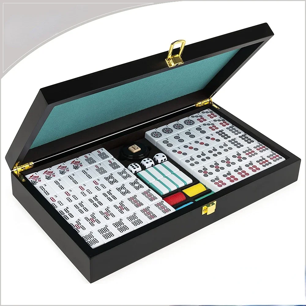 This classic mahjong set brings timeless game-night energy with a presentation that feels polished from the moment you open the box. Designed with 152 mahjong tiles (no Jokers) and a sleek wooden storage case, it is the kind of set that looks just as good on display as it does spread across the table. The structured box keeps everything neatly organized, protected, and ready for your next round of indoor play. Perfect for family gatherings, quiet evenings, and anyone who appreciates a traditional game with a more elevated feel, it turns an ordinary night in into something a little more special. The clean layout and classic styling give it that refined, gift-worthy look without losing the fun of the game itself. Great for seasoned players, collectors, and hosts who like their game-night setup to feel intentional. It is a beautiful addition to a game cabinet, coffee table, or gift list for someone who loves classic tabletop games.