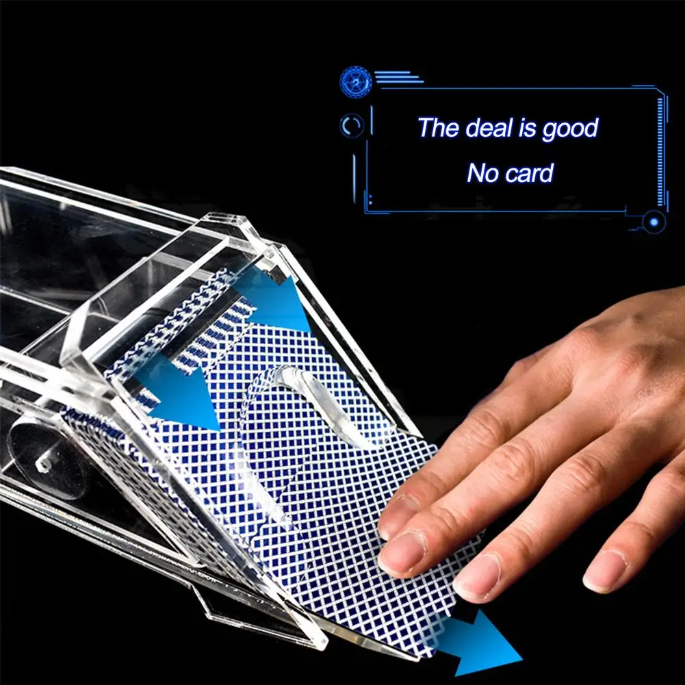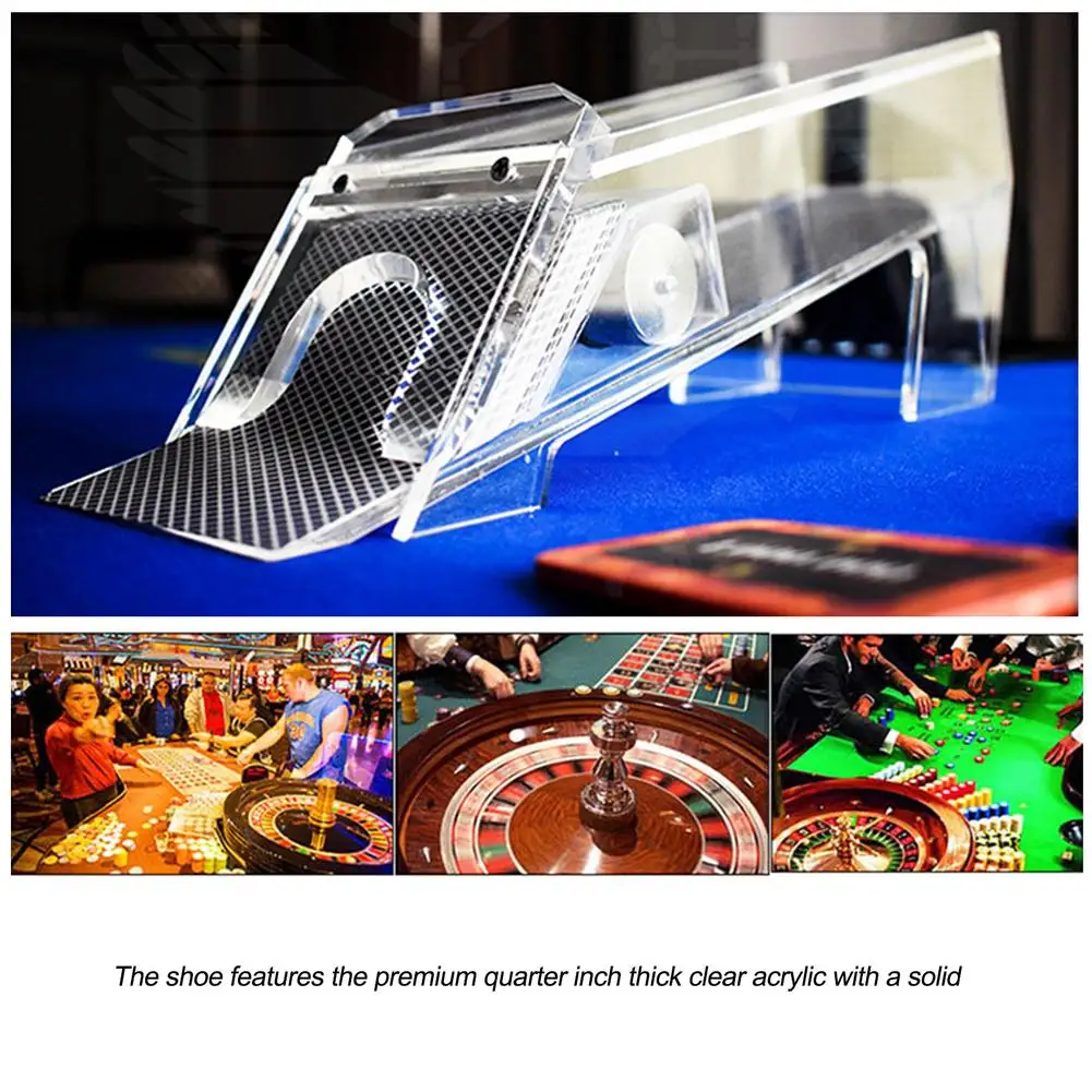 This deluxe acrylic card shoe brings instant casino-night energy to your table. Designed for Texas Hold’em, baccarat, poker nights, and home tournaments, it gives your setup that polished dealer-station look that makes the whole game feel more official. Built to hold up to 8 decks, it is perfect for longer sessions, larger groups, and hosts who like their game table running smoothly. The clear acrylic design looks sleek, keeps cards neatly stacked, and makes dealing feel a whole lot more satisfying. It is the kind of accessory that upgrades your setup from casual card night to full event status. Great for home casinos, party tables, game rooms, and anyone who appreciates the little details that make the night feel more legit. Durable, practical, and easy to use, it is made for repeat play without losing that sharp, professional look.