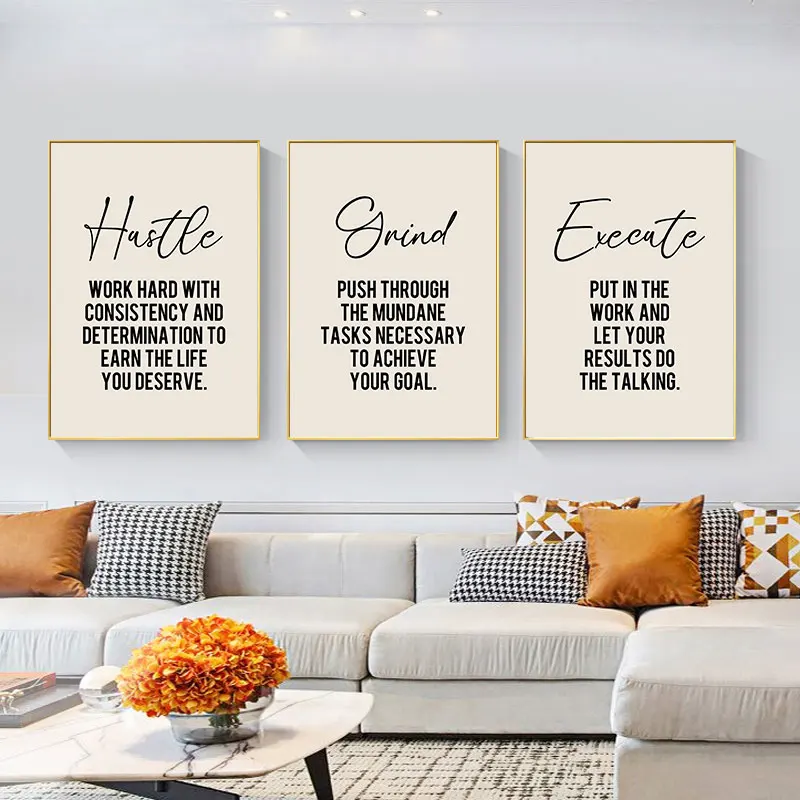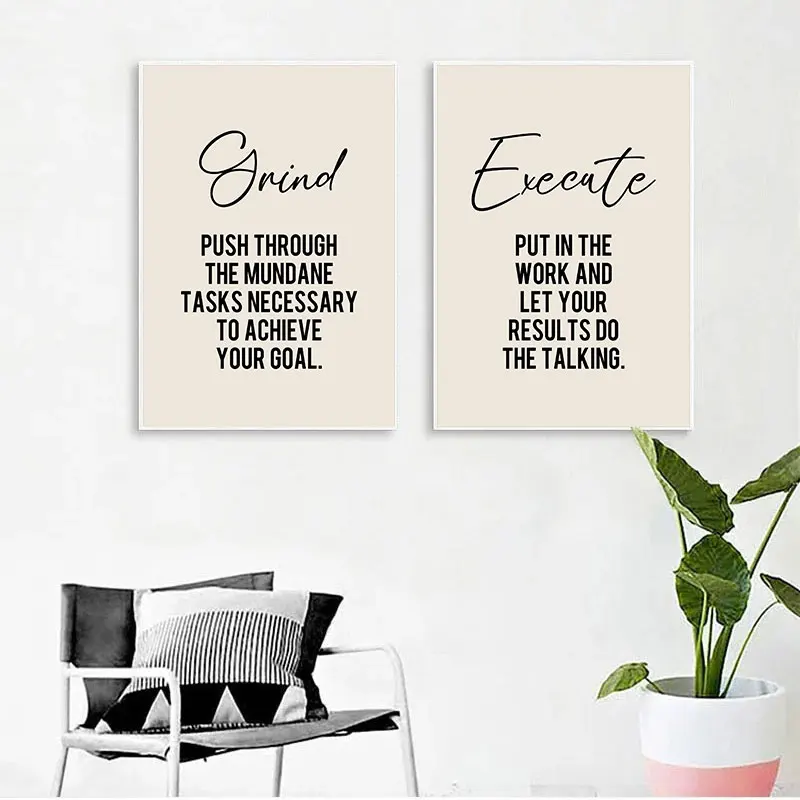 This Hustle Grind Execute wall art brings bold energy to your space without overcomplicating the vibe. With a clean minimalist design and a strong message, it is perfect for home offices, workspaces, studios, and anywhere you want a little extra motivation on the wall. It adds that polished, pulled-together look while still feeling modern and unfussy. Great for entrepreneurs, goal-chasers, and anyone trying to keep their ambition louder than their distractions. The simple quote style makes it easy to pair with almost any decor, whether your space leans sleek, cozy, or somewhere in between. It is the kind of piece that works as both decor and a quiet little push to keep going. Perfect for desk walls, office corners, and gift-giving for the person who is always building something.