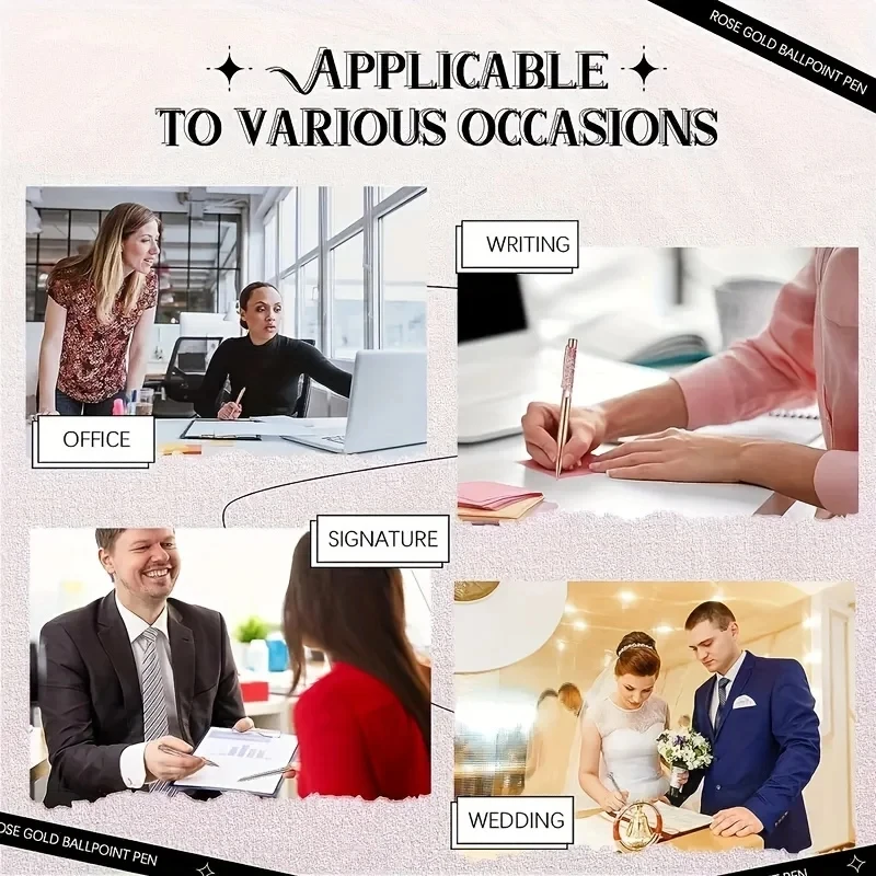 This rose gold crystal pen set is here to make your desk look a little more polished and your everyday writing feel a lot less boring. With sleek metal bodies, sparkling crystal accents, and built-in stylus tips, these pens bring equal parts function and fancy to your workspace. They are perfect for note-taking, planners, meetings, journals, wedding extras, and anyone who believes office supplies should be useful and cute. The rose gold finish gives them that elevated, giftable look that feels right at home on a desk, in a tote, or tucked into a notebook pocket. Great for students, office setups, bridesmaid gifts, teacher gifts, and little desk upgrades that make the day feel more put together. The stylus feature makes it easy to move from paper to phone or tablet without missing a beat.