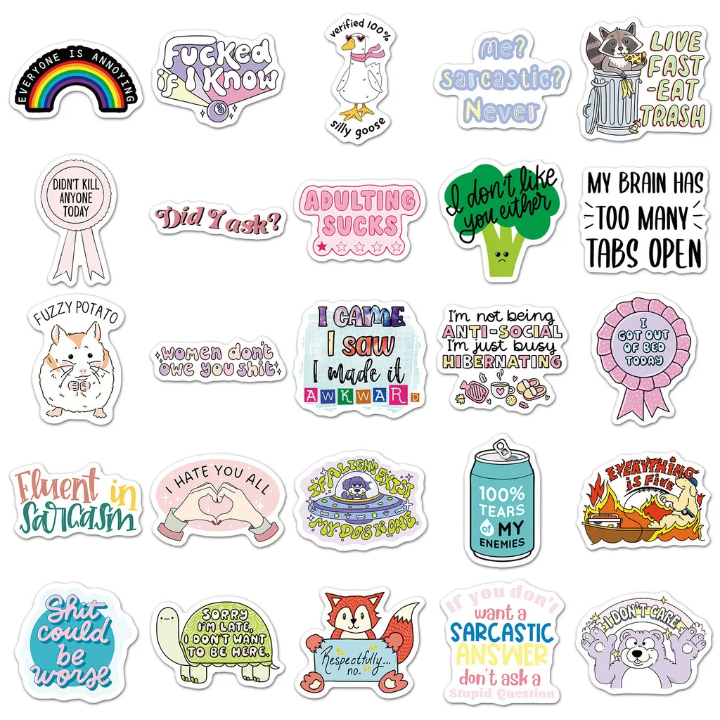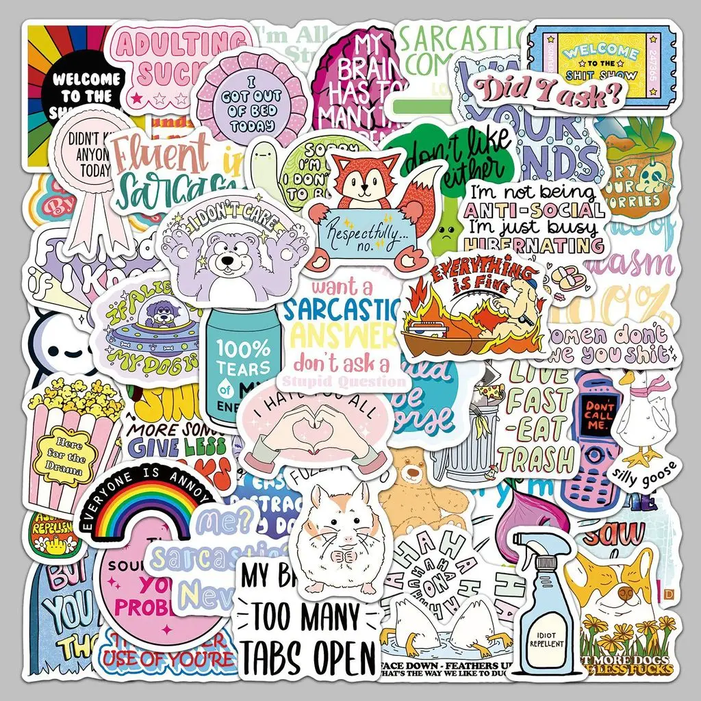 This snarky phrase sticker pack is made for people who process life through sarcasm and very well-placed little comments. Packed with witty English phrases and attitude-heavy charm, these waterproof decals are perfect for notebooks, laptops, planners, water bottles, phone cases, and anywhere else that could use a little more personality. They bring the exact kind of mildly unhinged, aesthetically pleasing chaos we fully support at Margins and Meetings. Great for decorating your workspace, journaling your spiral, customizing gifts, or making your everyday stuff feel a lot less boring. The mix of sarcastic humor and clean graphic style makes them especially good for desks, planners, and accessories that deserve better than basic decor. Easy to stick, easy to love, and very hard not to relate to, they are the kind of stickers that make people stop and read every single one.