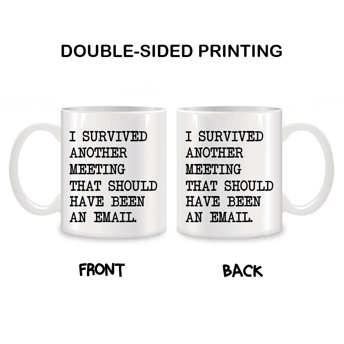 This “I Survived Another Meeting That Should Have Been an Email” mug is for the office warriors out there doing their best through unnecessary calendar invites and soul-draining Zoom calls. Funny, painfully relatable, and exactly the kind of sarcasm we support, it brings instant personality to your desk, break room, or work-from-home setup. The clean white ceramic design keeps it classic, while the message says everything your out-of-office reply cannot. It is perfect for coffee, tea, and that dramatic sip you take right after someone says, “Let’s circle back.” Great for coworkers, managers, office besties, birthday gifts, Christmas gifts, and anyone who has ever lost an hour of their life to a meeting with no real purpose. It is the kind of mug that gets a laugh, a nod, and probably an “I need that” from the right crowd.