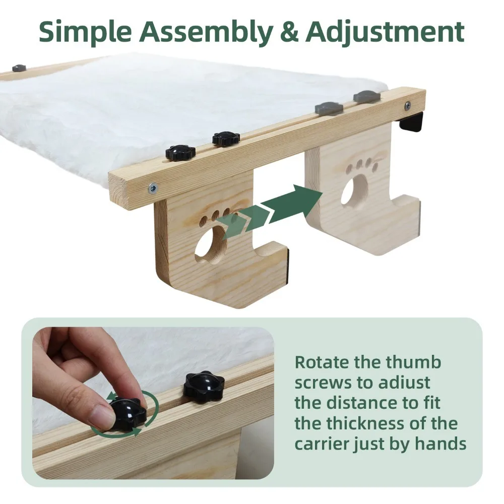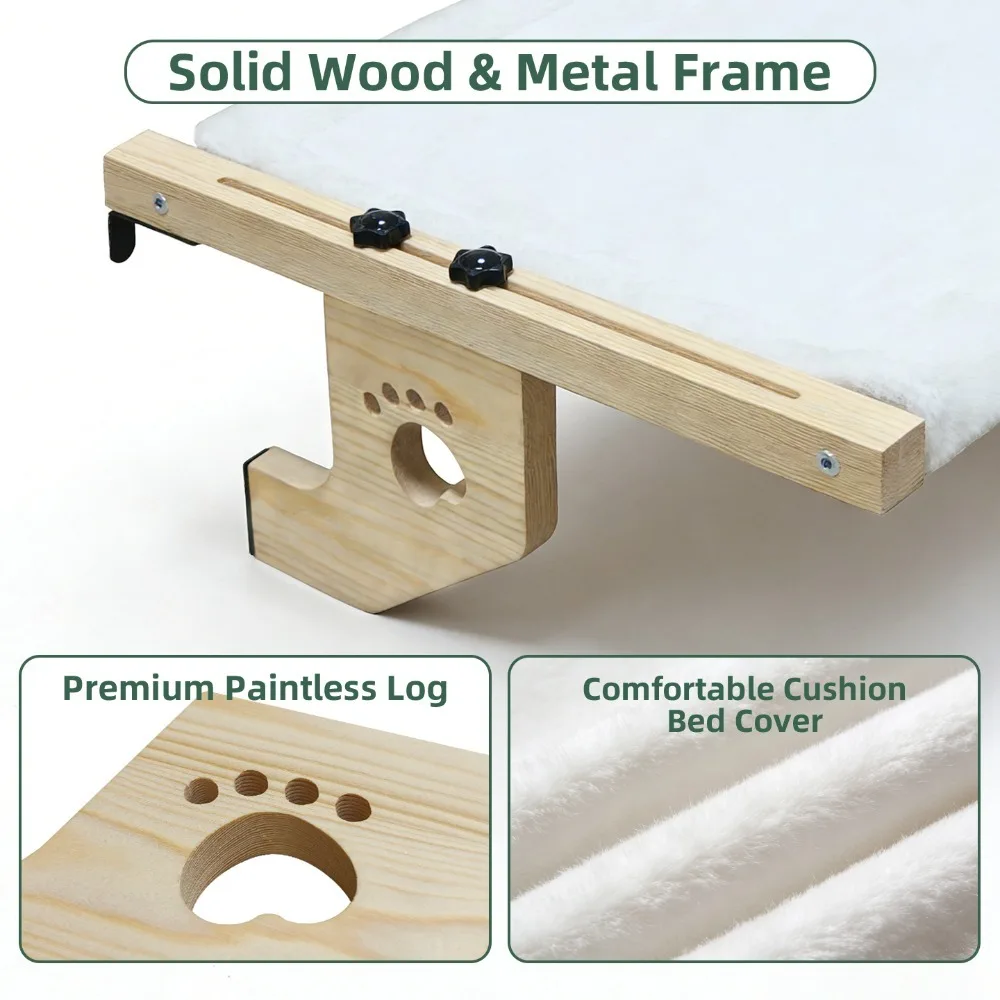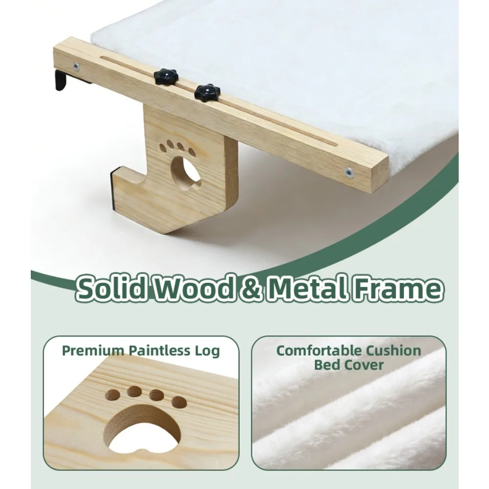 This wooden frame cat window hammock is basically a front-row seat to your cat’s favorite daily activity: watching the world like they own it. Designed with a sturdy hanging frame and cozy bed surface, it creates the perfect sunny little perch for naps, bird watching, and silent neighborhood judgment. The wooden details give it a warmer, more polished look than the average pet setup, while the paw print accents add just the right touch of charm. It is the kind of cat furniture that feels practical for your pet and actually cute in your home, which we fully support. The detachable bed design makes it easier to clean and maintain, because even the chic cat furniture has to survive real life. Great for windows, bright corners, and cats who treat every patch of sunlight like reserved seating.